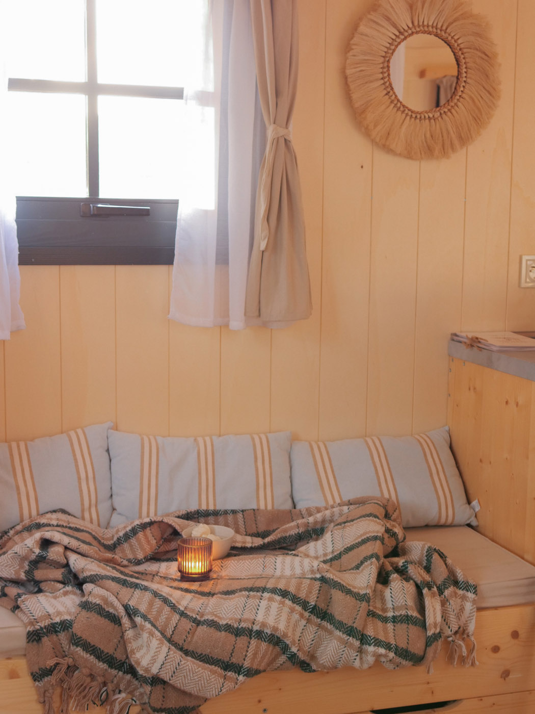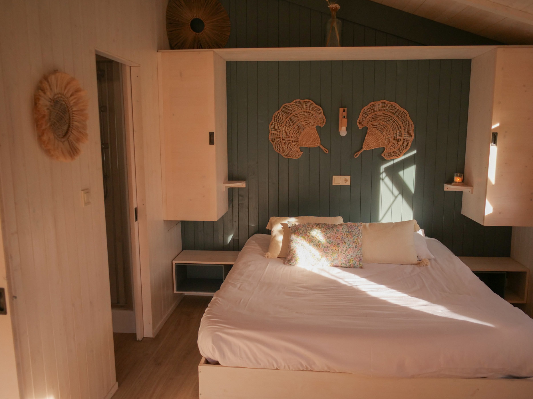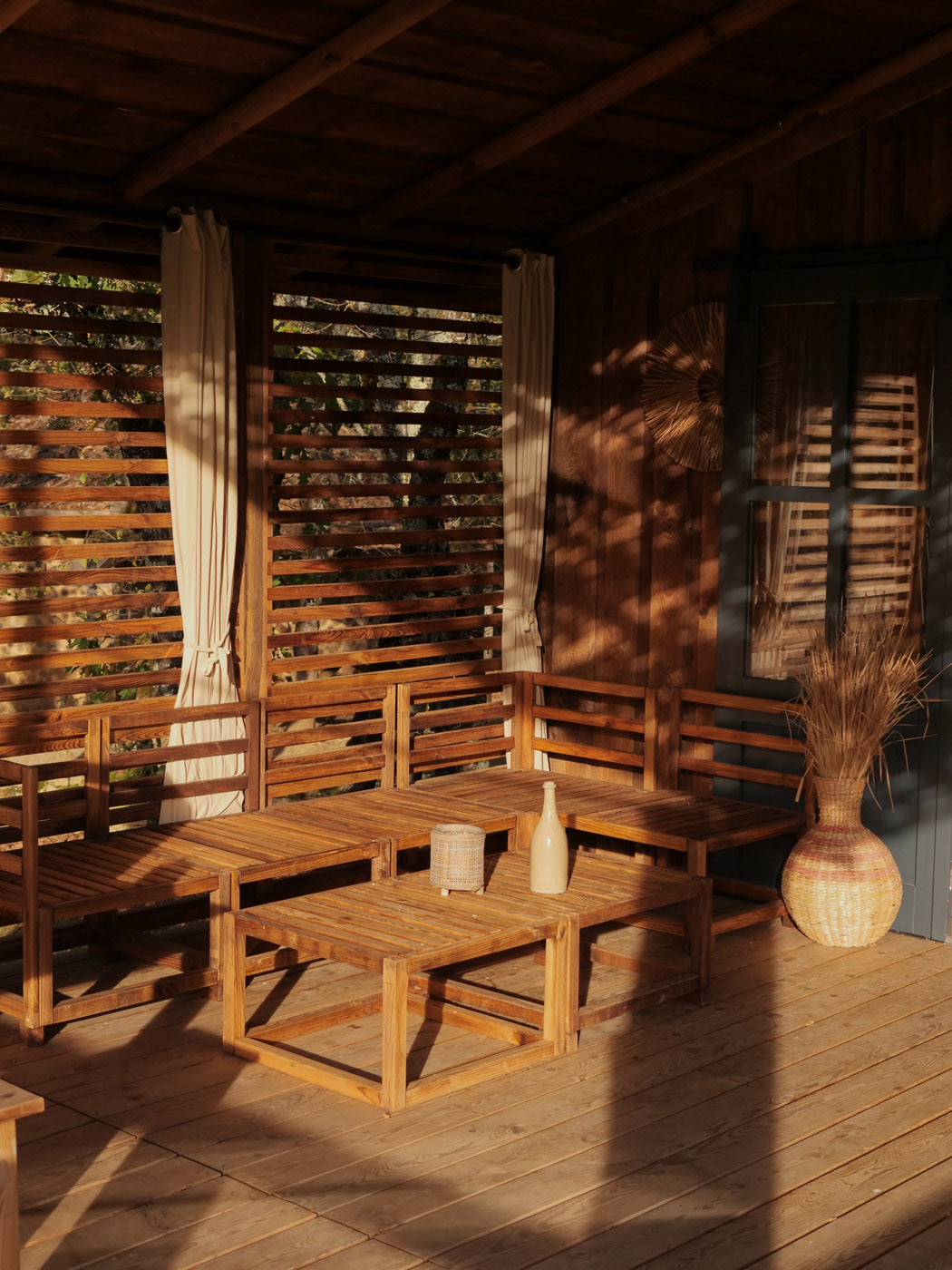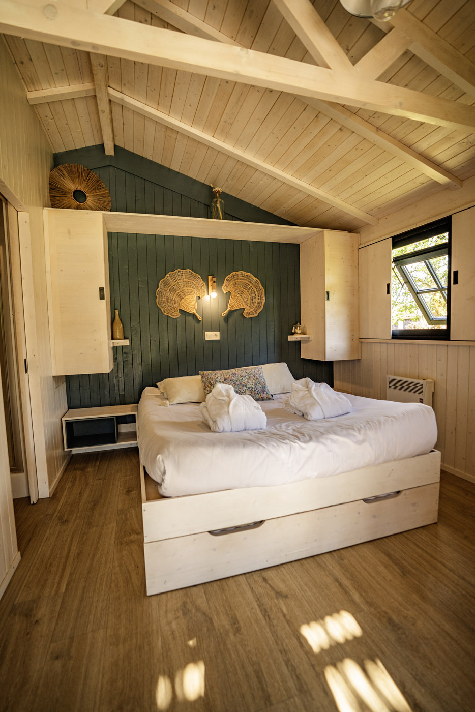 La Sola est notre toute nouvelle cabane avec spa privatif construite en 2024. Avec son immense terrasse et son spa XXL, cette cabane avec spa privatif faite pour un maximum de deux adultes et un enfant, est parfaite pour profiter de l’extérieur avec tout le confort. Elle bénéficie d’une vue magnifique sur le domaine tout en préservant votre intimité grâce à un système ingénieux de liteaux disposé en oblique sur la terrasse.